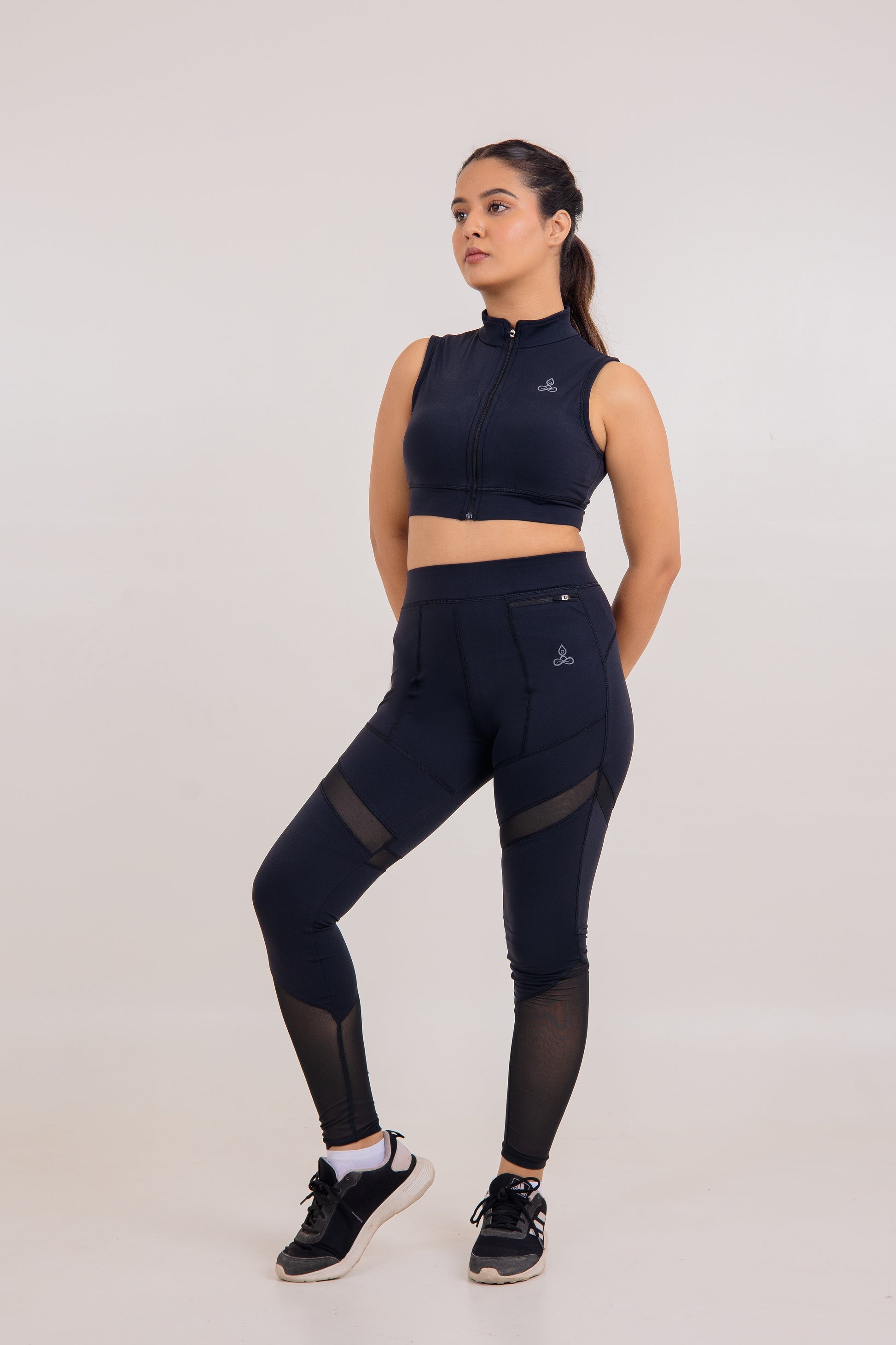 Pair the Skati Bra with high-waist yoga tights or a lightweight jacket for a bold and active look. Its zipper adds both function and style, making it perfect for yoga classes, outdoor workouts, or a casual sporty day.