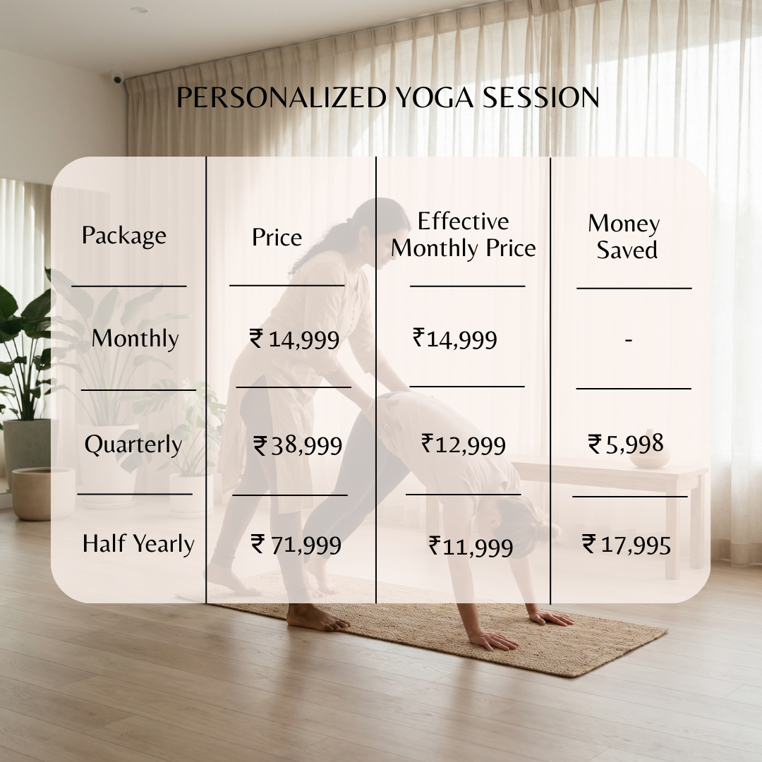 Our Personalized Yoga Session is designed to cater specifically to your individual needs, fitness level, and health goals. Whether you want to improve flexibility, manage stress, lose weight, or work on specific health concerns, our experienced yoga trainers will create a customized yoga plan just for you. This one-on-one session ensures that every pose, breathing exercise, and relaxation technique is tailored to suit your body and mind, helping you achieve maximum benefits in a comfortable and supportive environment.